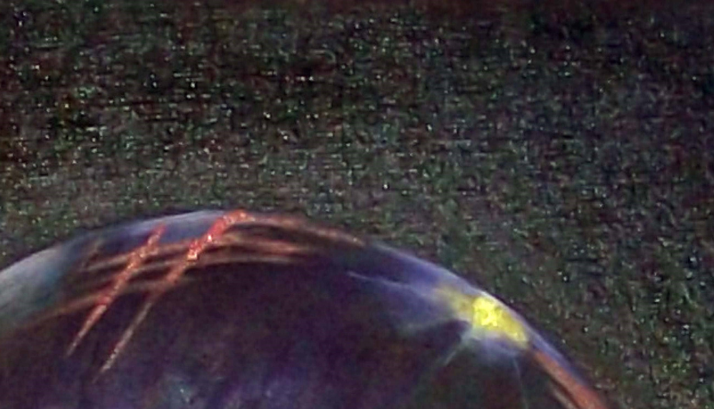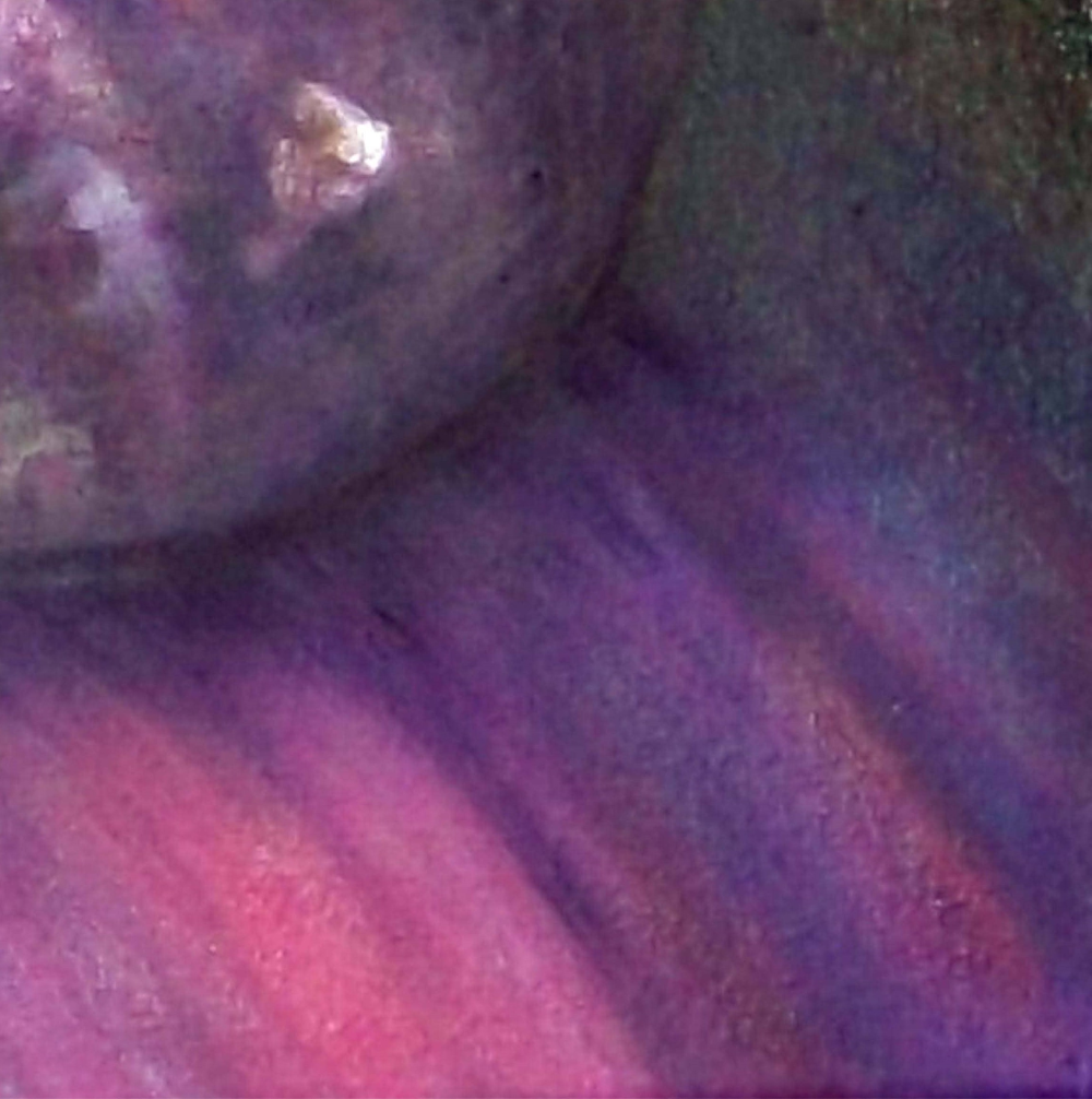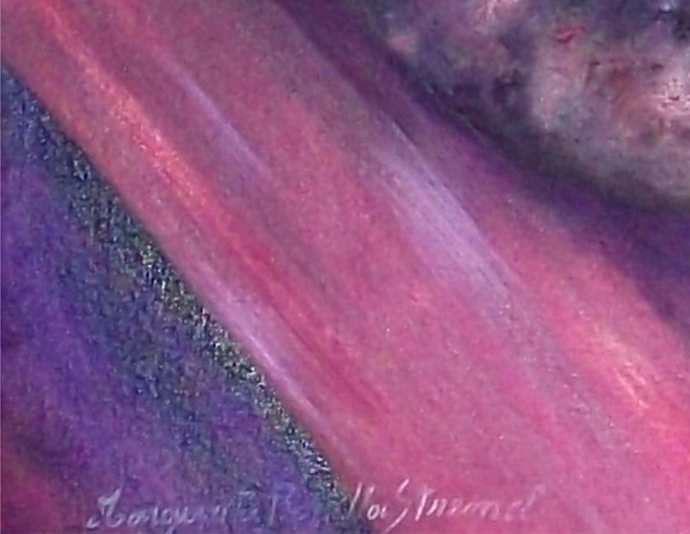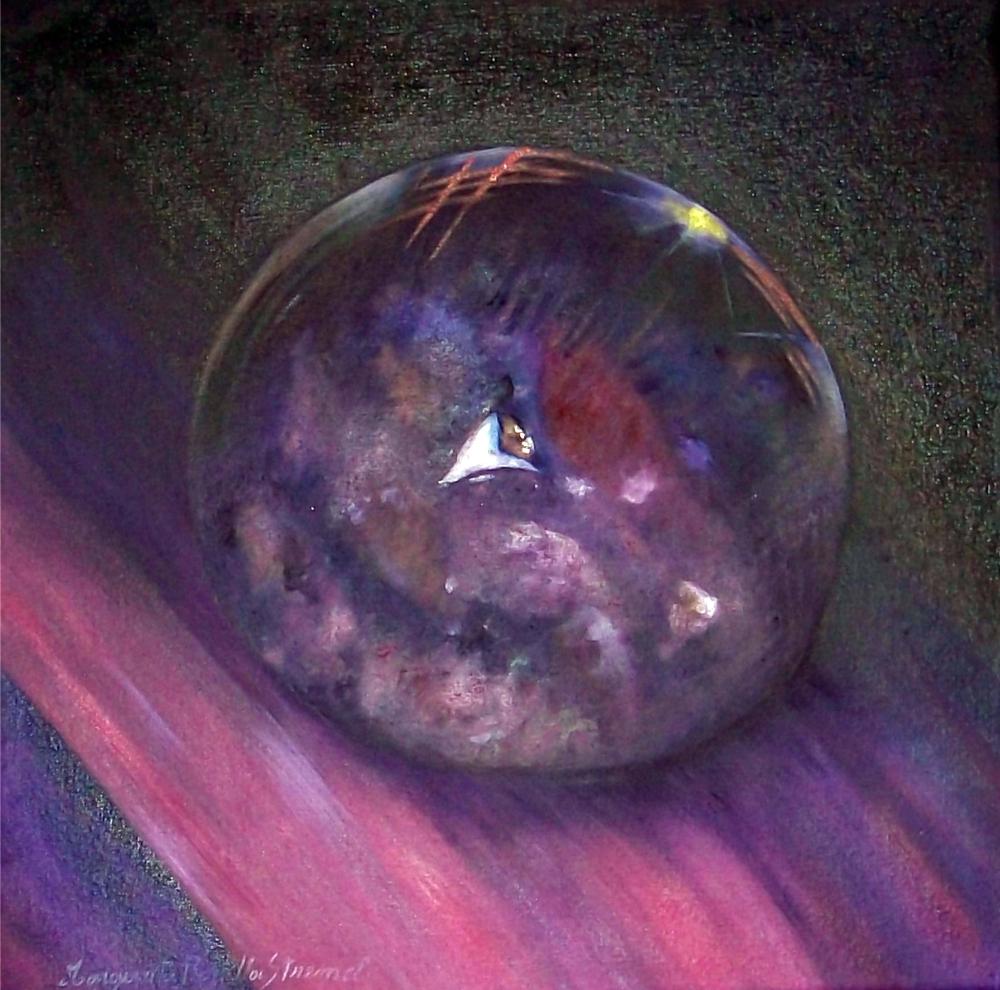 Obra de pequeño formato y he querido representar una gota de lluvia deslizándose por un pétalo de flor.