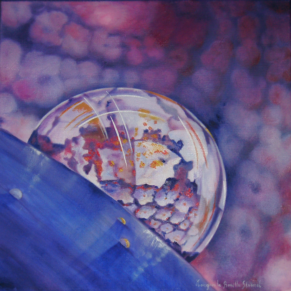 Un pequeño formato que también representa una gotita de agua deslizándose por el pétalo de una flor.Un mundo aparece dentro de ella.