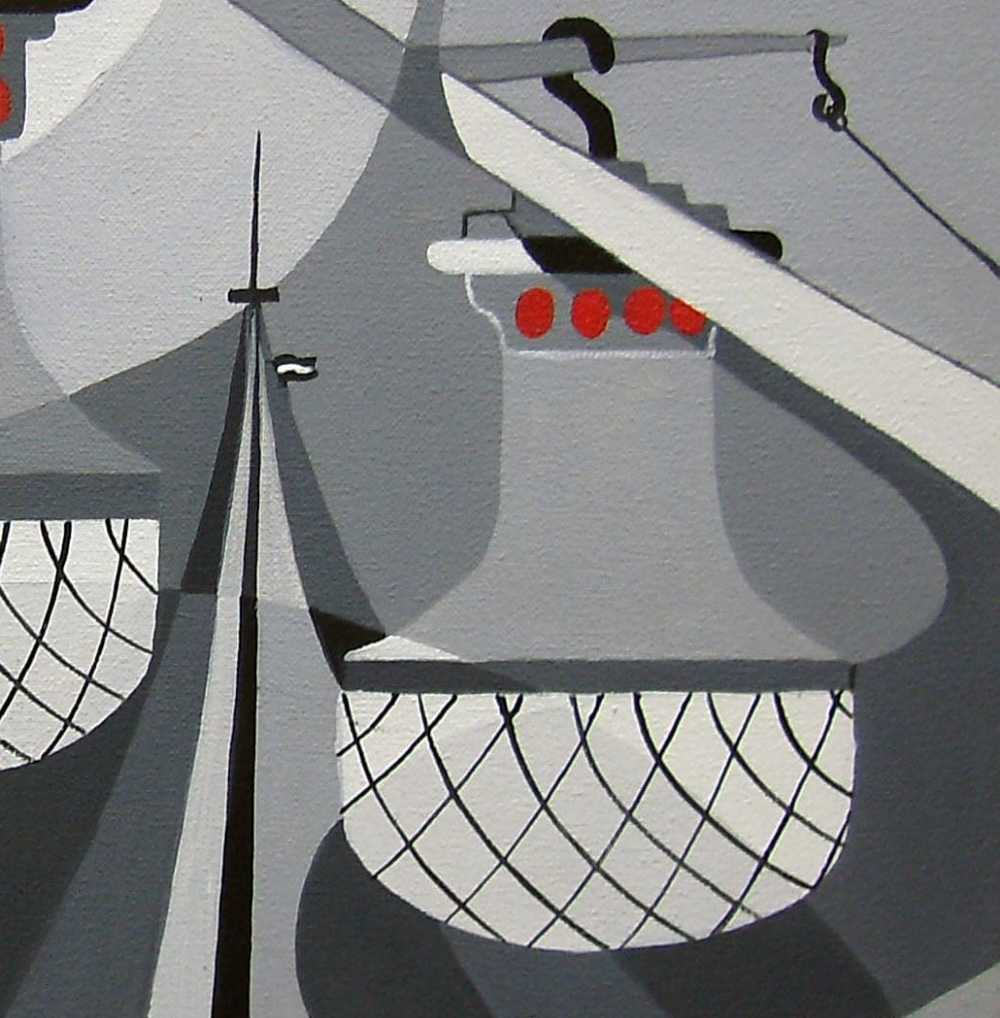 DESCRIPCIÓN: Una obra de pequeño formato lineal en degradé de grises con un toque de rojo.