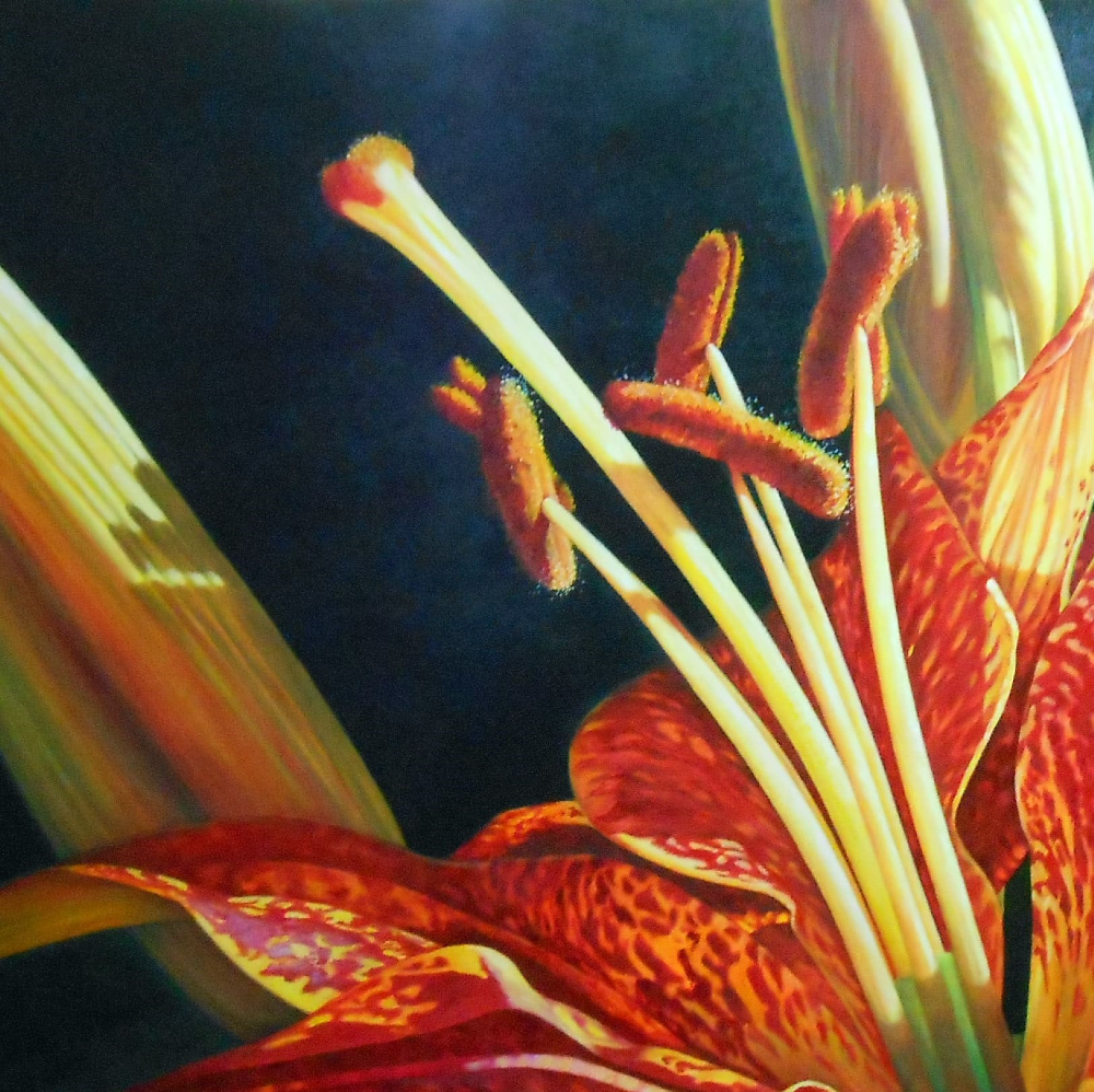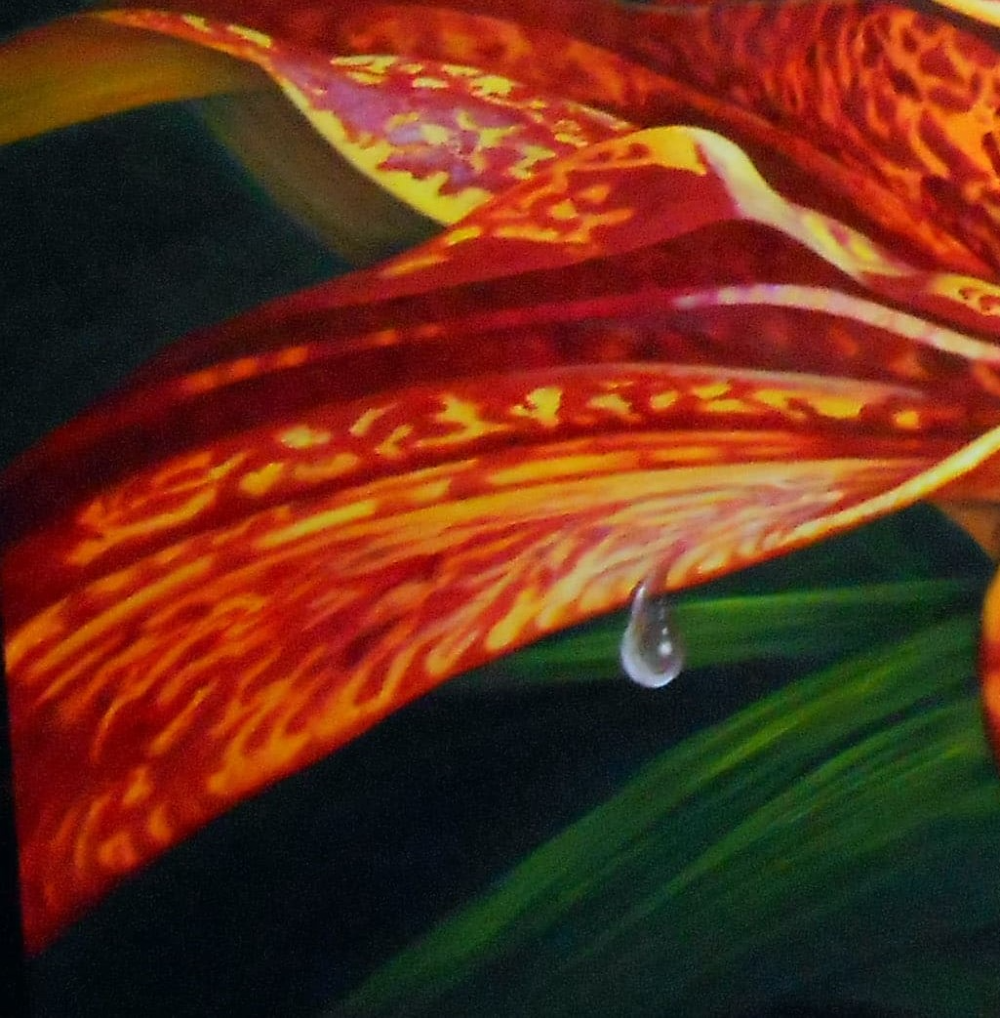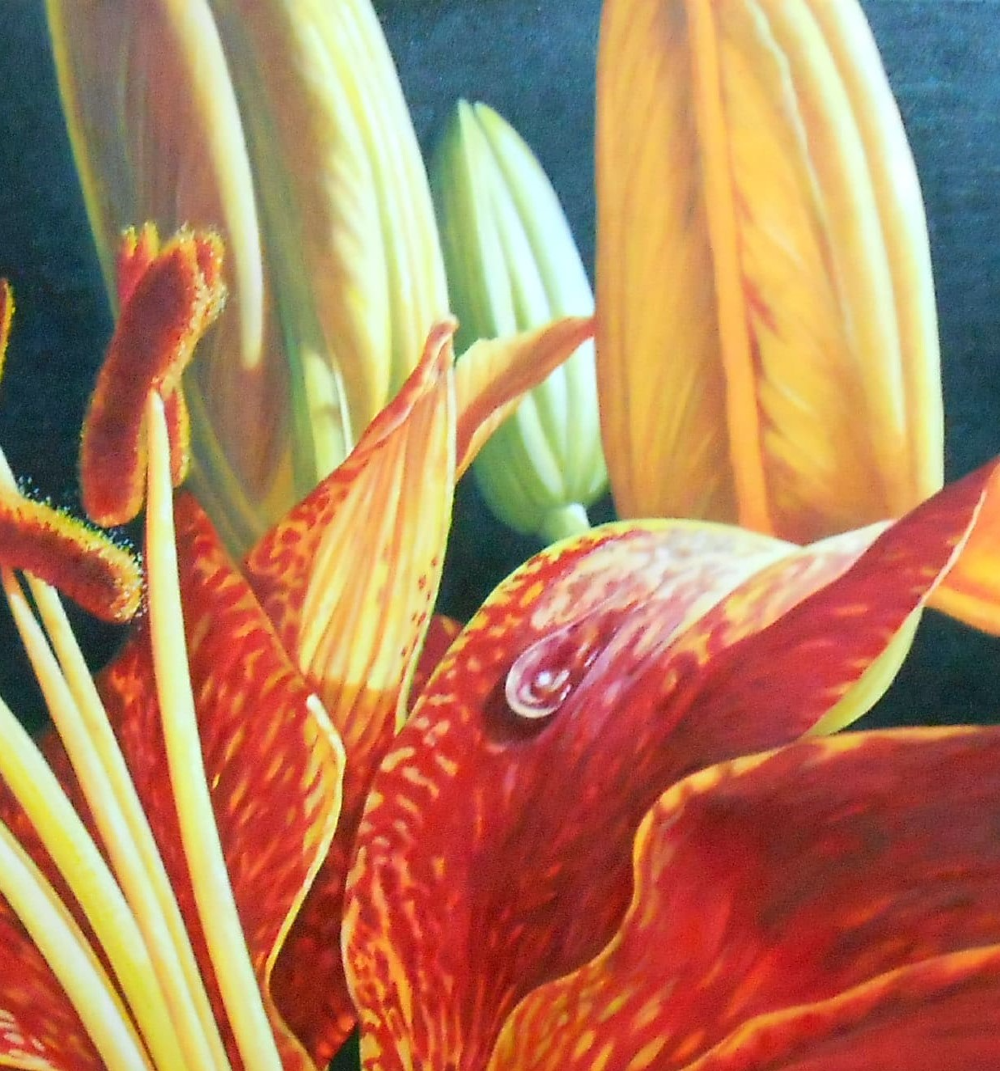 Para esta obra la idea o el “llamado” a pintarla fue el regalo de la planta de LILIUM de una amiga, ese fue el detonante ante tanta belleza, como no pintarla????? si tenía que hacerlo y salió esta hermosa obra de la cual estoy enamorada.