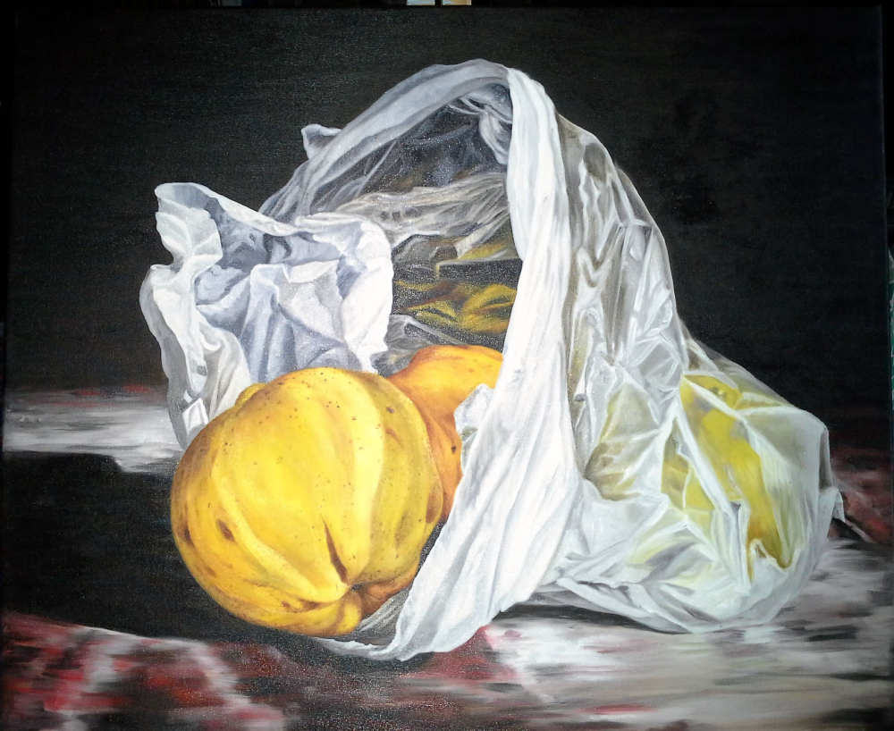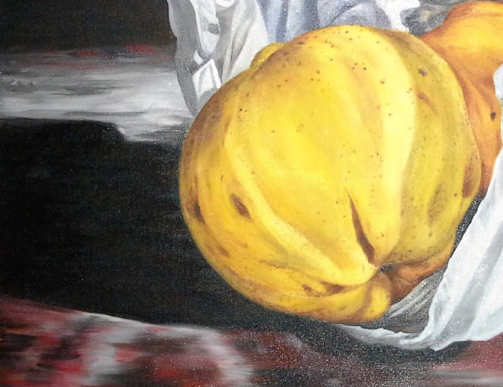 Traje de la verduleria unos membrillos por el color amarillo intenso que tenian, los puse en la mesa y les saque un monton de fotos, de las cuales salio esta obra.