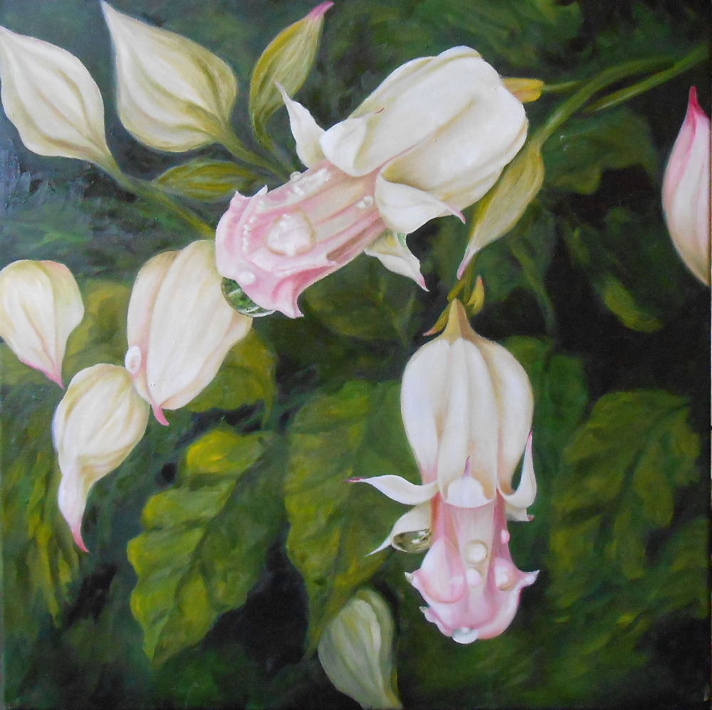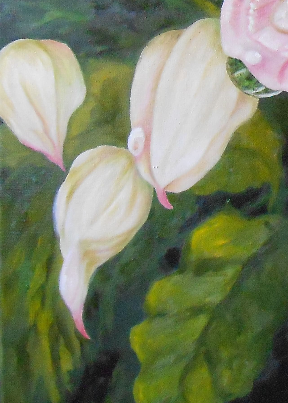 Una obra que pinte observando a mis plantas.Estas flores de Begonias son hermosas, es el segundo cuadro de estas flores.