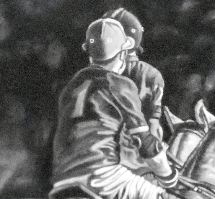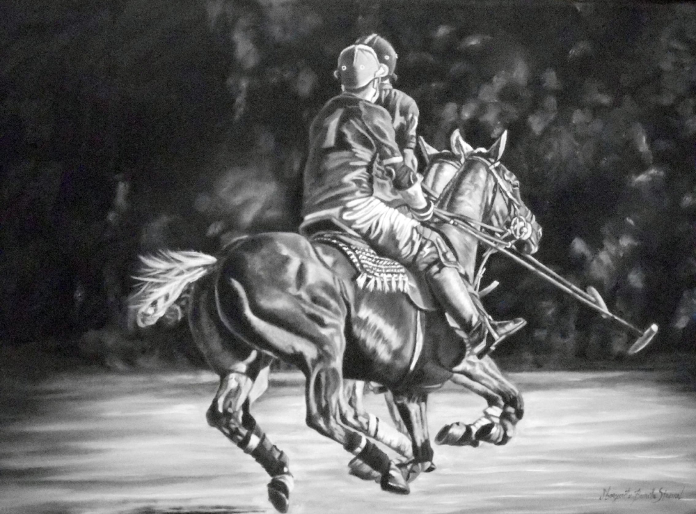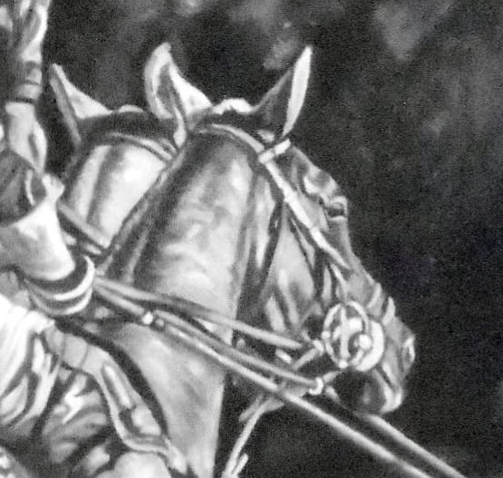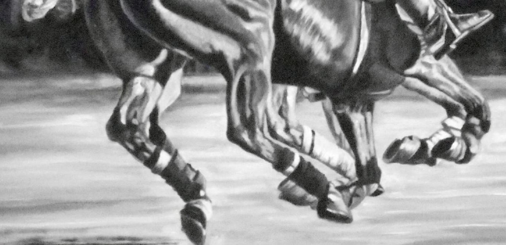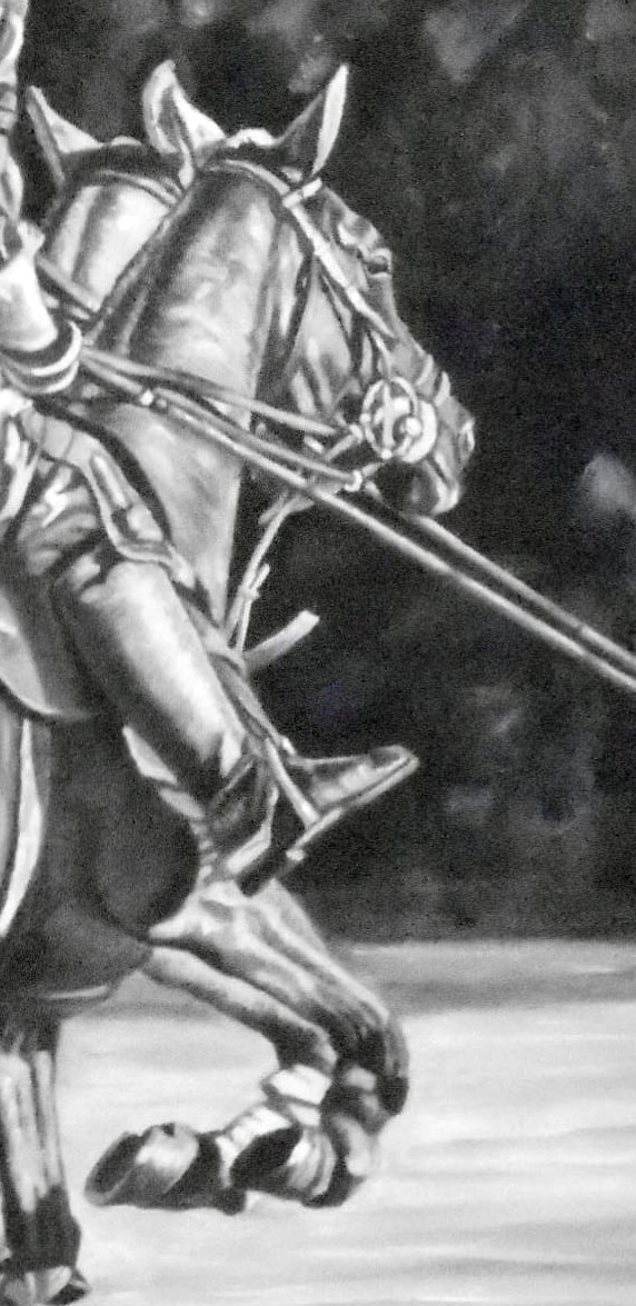 DESCRIPCION: La elegancia de los movimientos de los caballos y los jinetes pintados en blanco y negro.