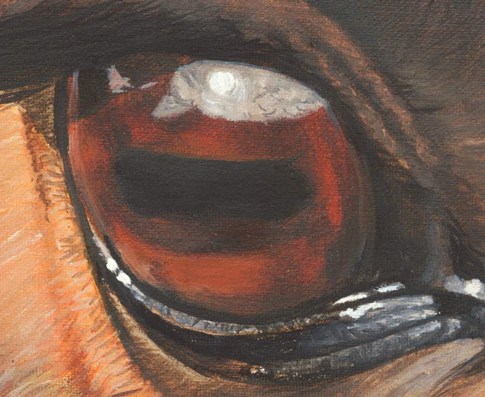 De la serie,OJOS, un simpático amigo que se dejó retratar en un bastidor de madera de fibrofácil.