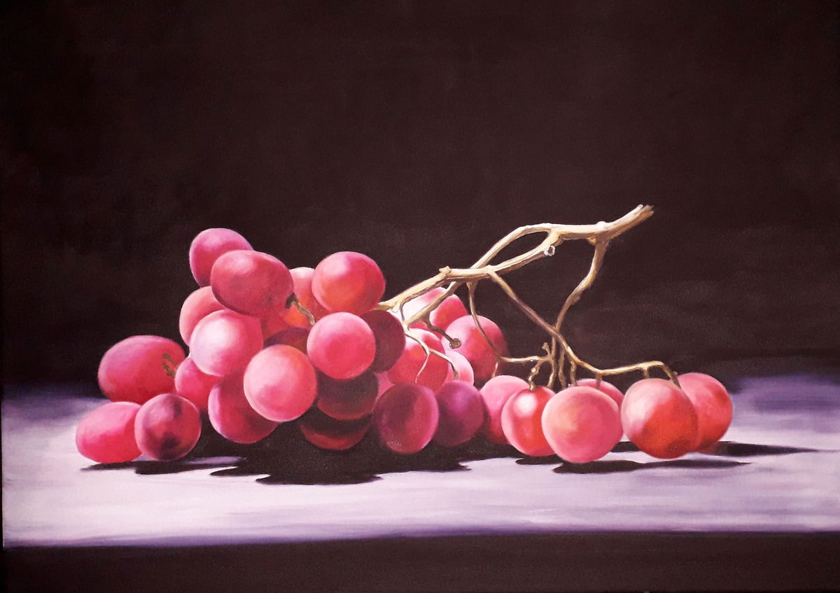 UNA NATURALEZA MUERTA REALIZADA CON UN SIMPLE RACIMO DE UVAS.