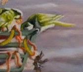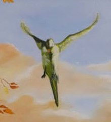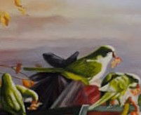 CAMINABA POR UNA VEREDA CUANDO DE REPENTE VEO UN MONTON DE LOROS ASALTANDO LAS BOLSAS DE BASURA EN UN CANASTO. HACIAN UN LIO BARBARO , POR ESO LOS PINTE ,FUE ALGO PINTOREZCO.