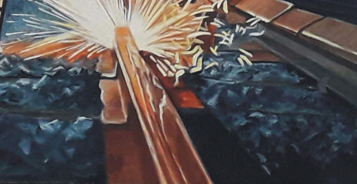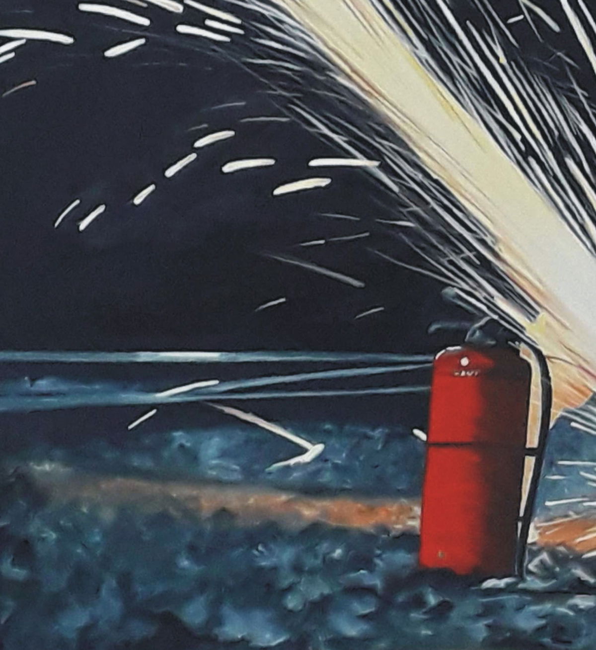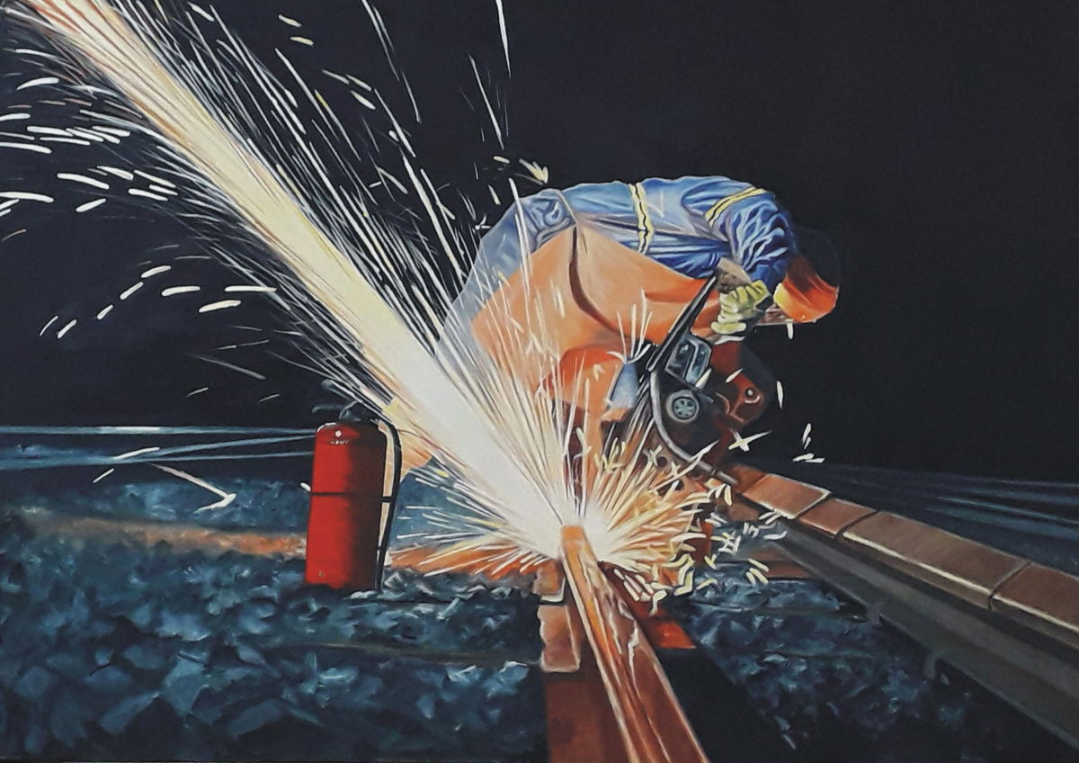 MOSTRAR EN UNA PINTURA UN TRABAJADOR NOCTURNO DE LOS FERROCARRILES ARGENTINOS.