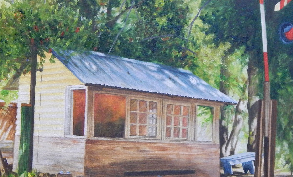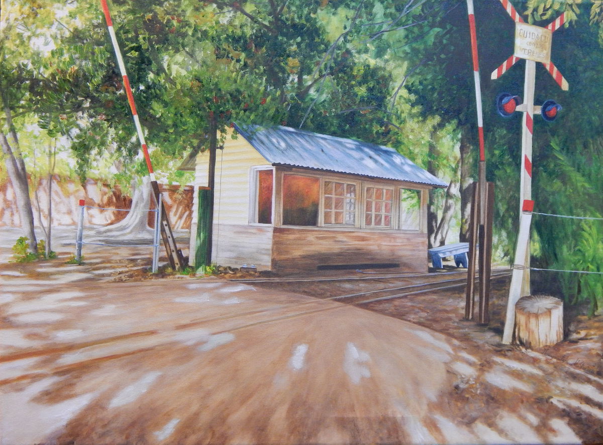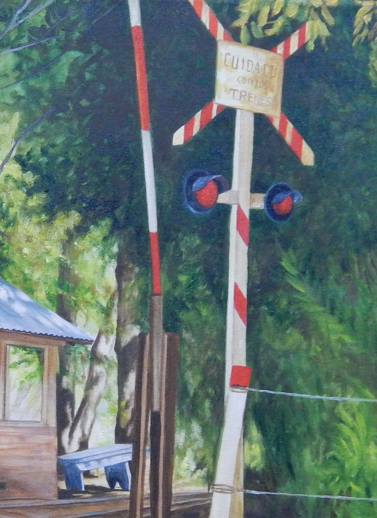 UN RINCON DEL FERRO CLUB DE REMEDIOS DE ESCALADA DONDE SE PUEDE APRECIAR EL CRUCE DE VIAS Y LA CASITA DE SEÑALES .