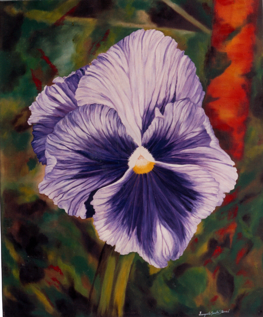 DESCRIPCIÓN: Otra obra creada en base a las flores de mi jardín, Mis macetas en ese momento estaban abarrotadas de Pensamientos.