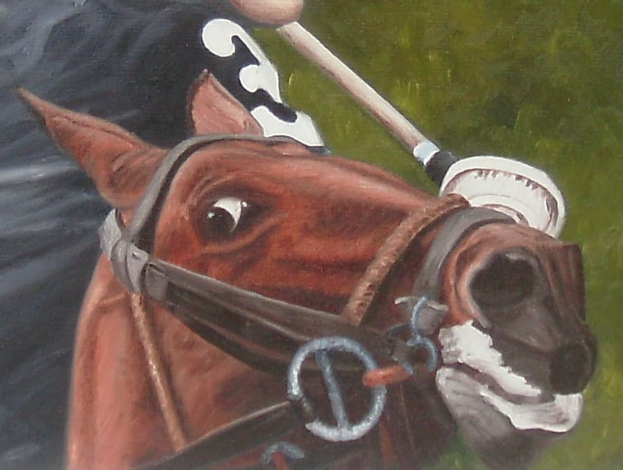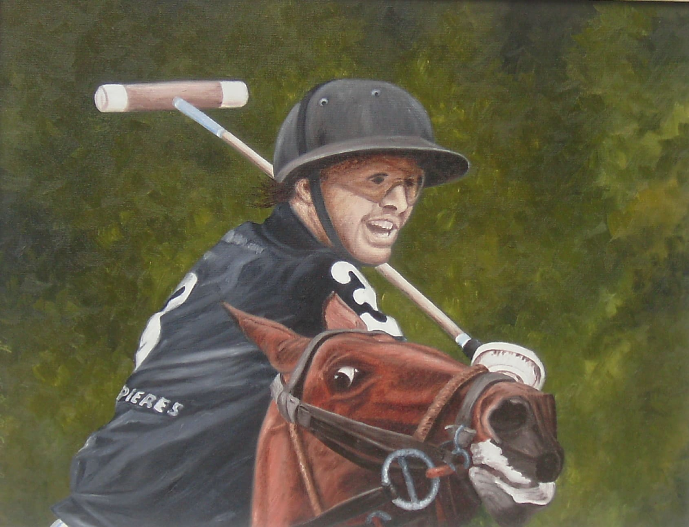 DESCRIPCIÓN: Uno de los primeros cuadros que realice con el tema polo. Hay muchos más.El tema es el caballo principalmente y después el ginete.