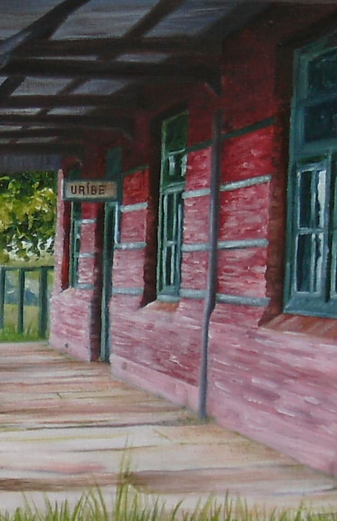 CREACIÓN: EN MIS VIAJES POR ALGUNOS LUGARES VISITE URIBELARREA, SU PUEBLITO Y SU ESTACIÓN DE TRENES, LA CUAL PINTE.