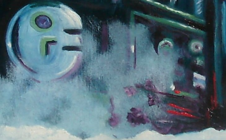 CAMILA ES LA LOCOMOTORA DEL FIN DEL MUNDO. SE ME OCURRIO PINTARLA SOLO CON AZUL, AMARILLO Y BLANCO.