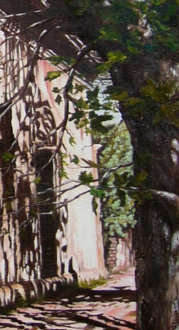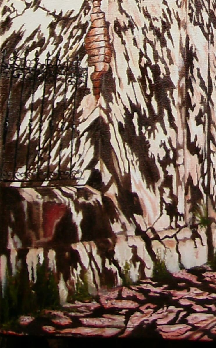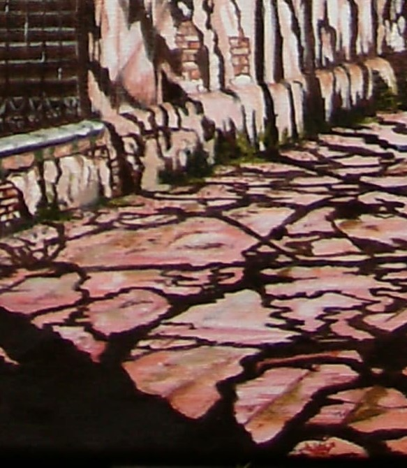 Ella sobrevivió al tiempo todo lo que pudo, sus paredes y sus veredas servían de pizarrón para que las sombras de los árboles crean figuras imaginarias . Esquina de CHACABUCO Y BELGRANO-BANFIELD.