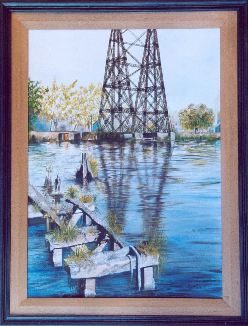 Pintura realizada en bastidor de tela al Oleo, un paisaje de LA BOCA en el Riachuelo, BUENOS AIRES.