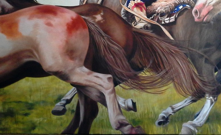DESCRIPCIÓN: Una pintura que me encantó hacer por los caballos y la acción del jinete, los colores, considerando el tamaño.