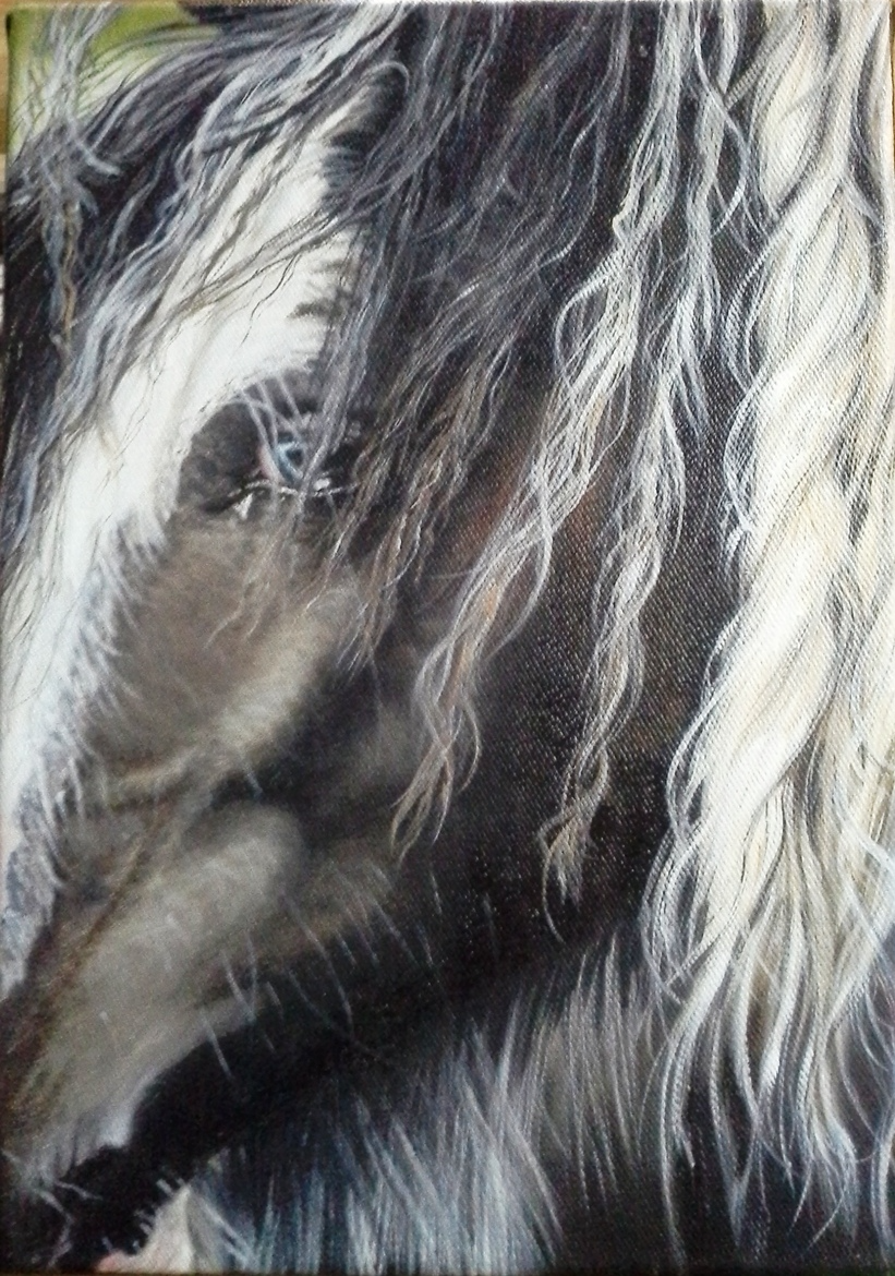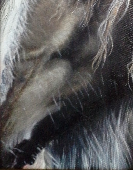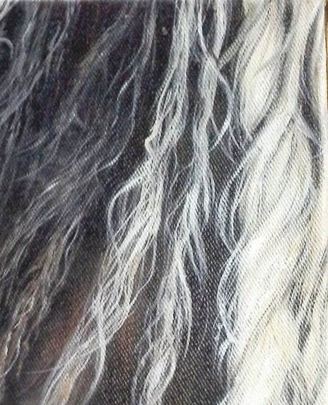 Detalles de los rizos que caen sobre los ojos en este pequeño formato.