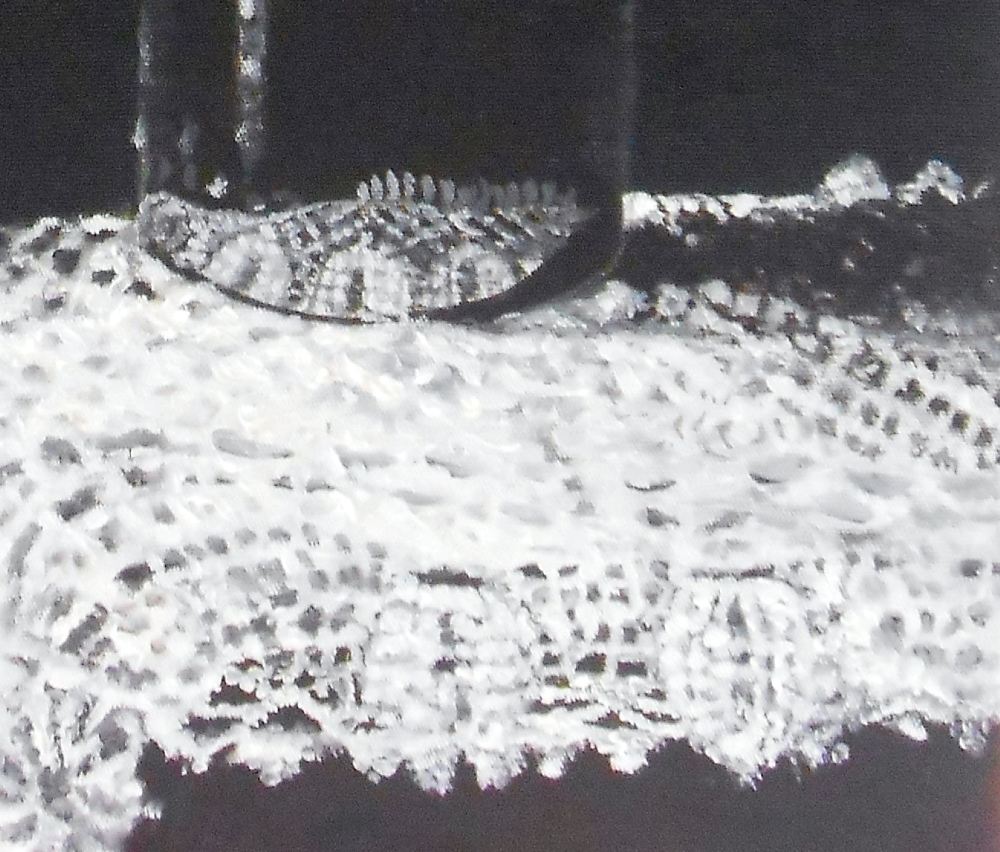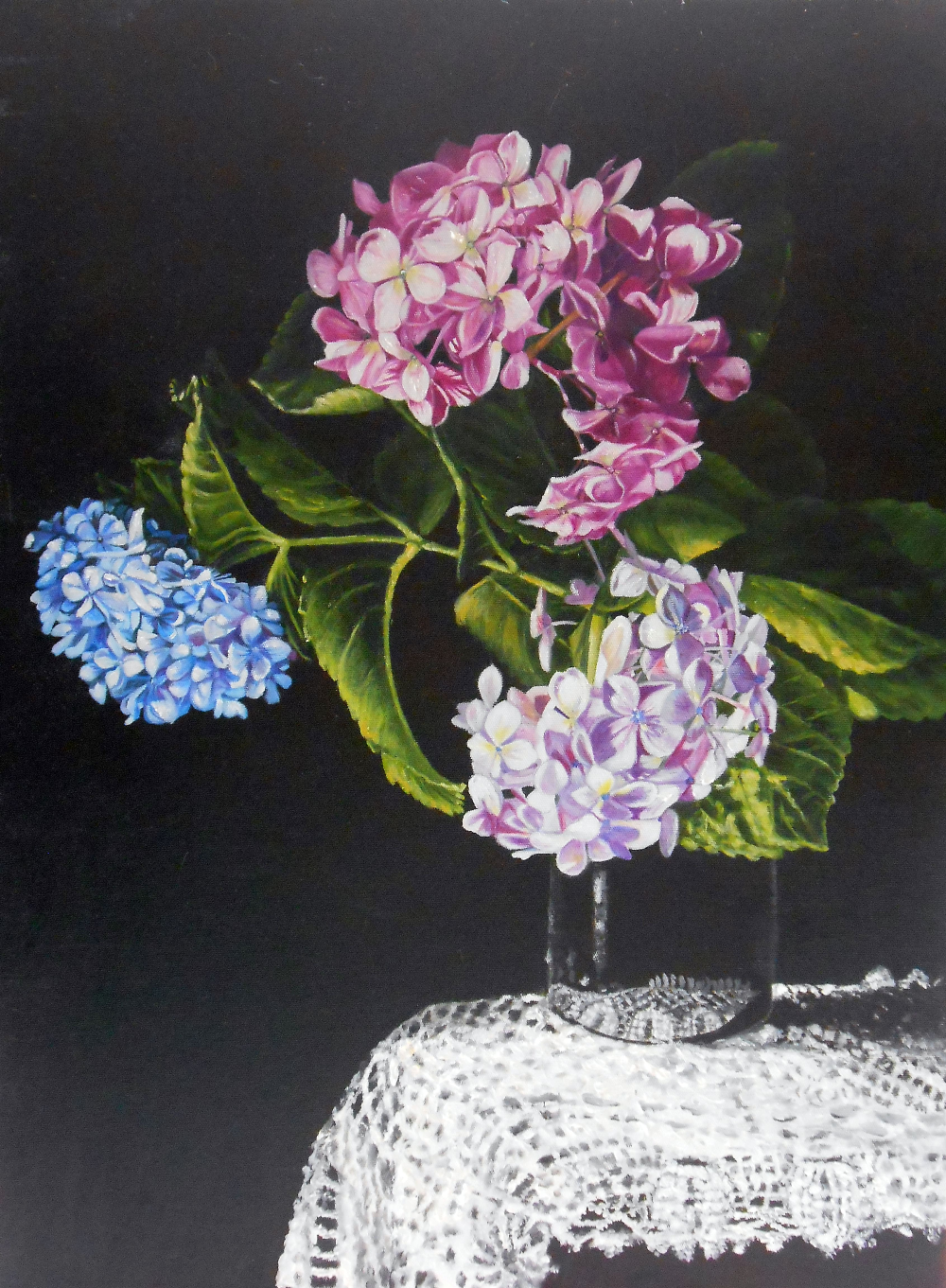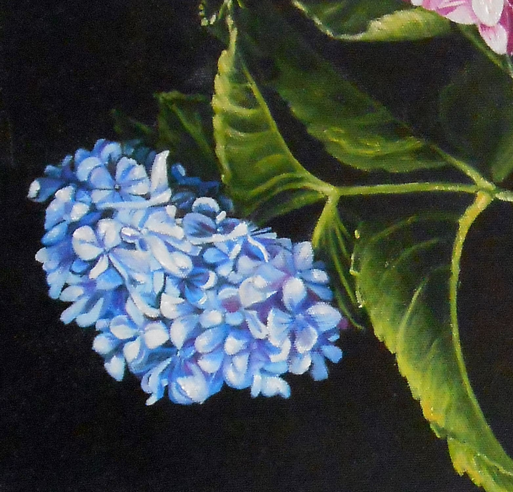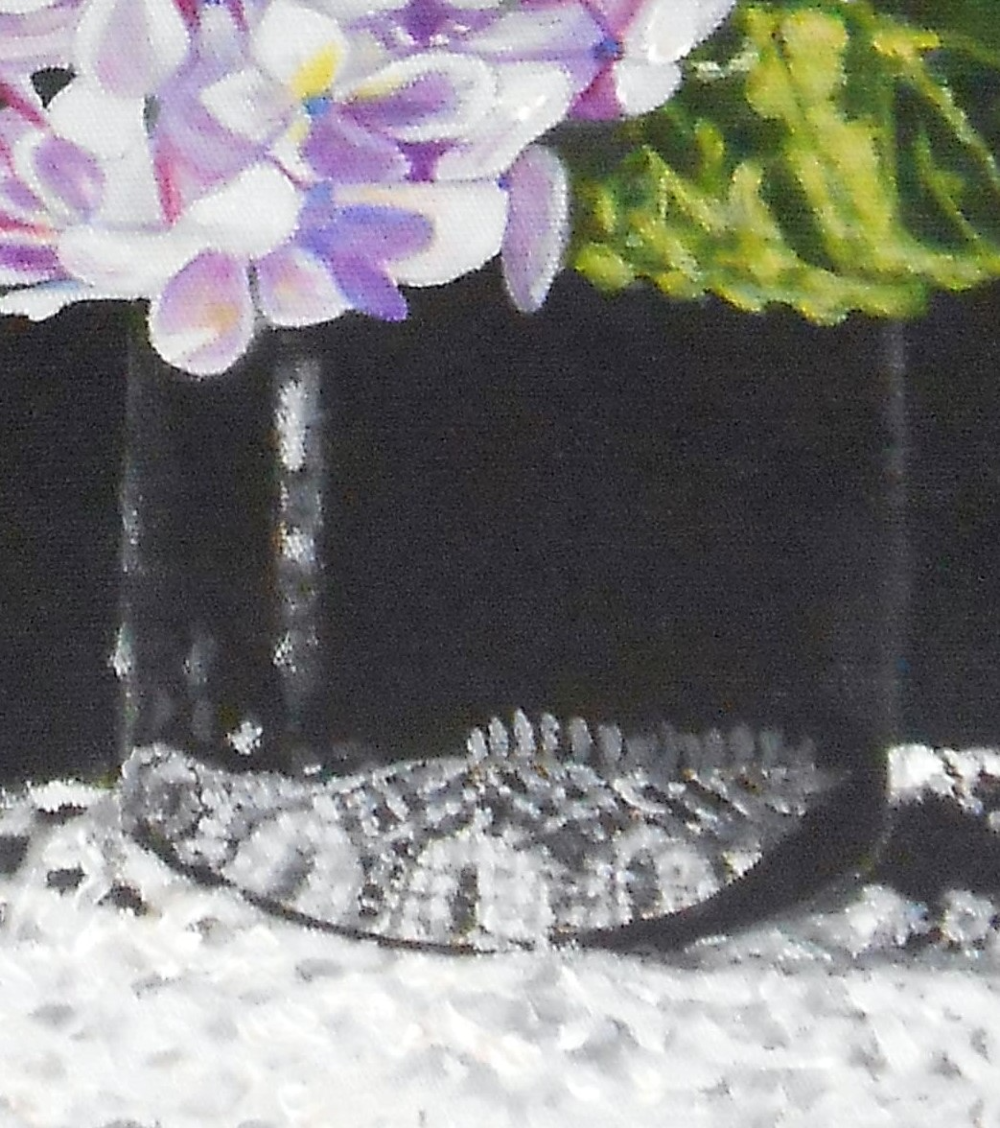 En la pintura le puse una carpeta tejida por DOÑA CARMEN ,(un ser maravilloso) debajo del florero.