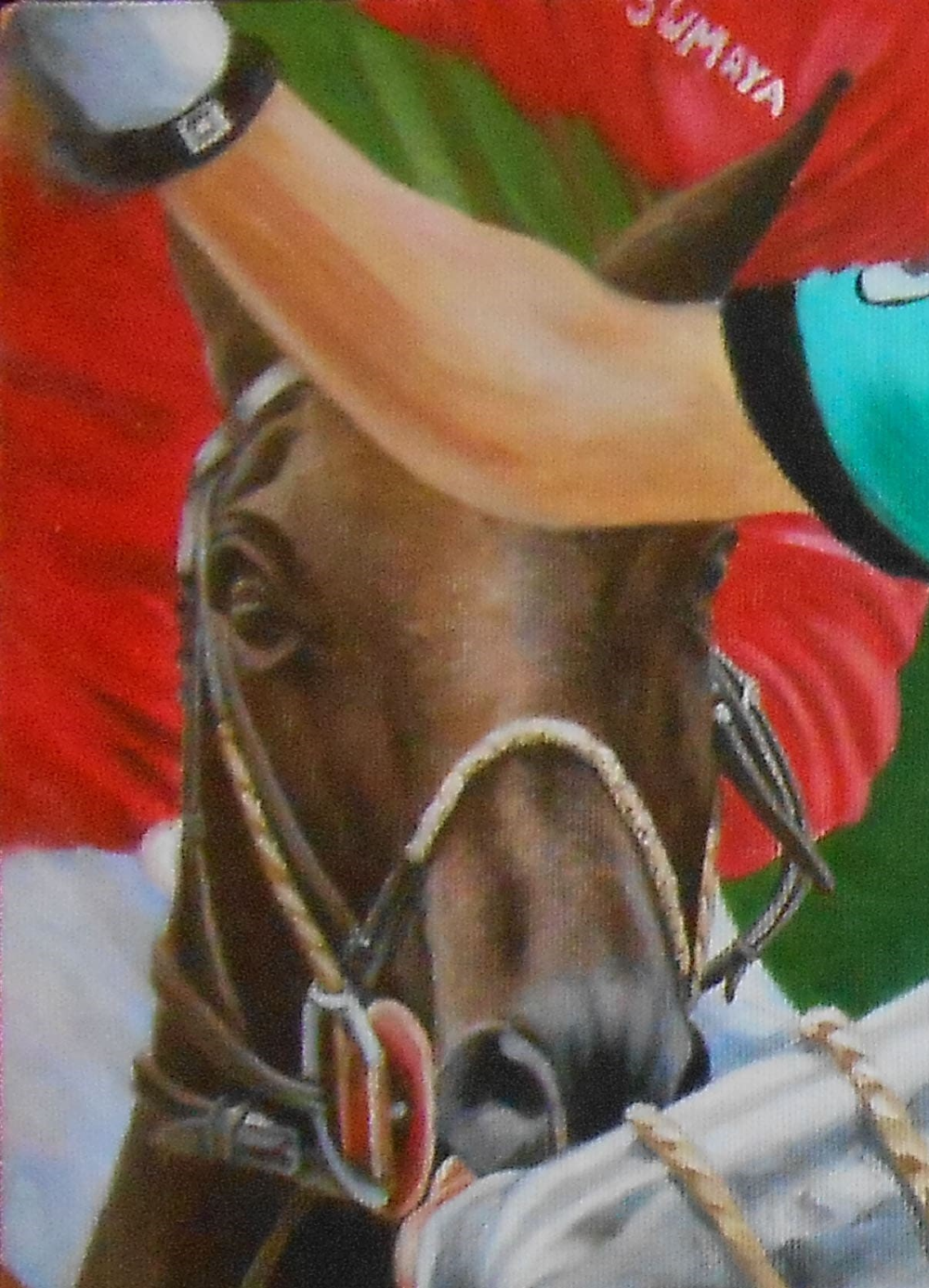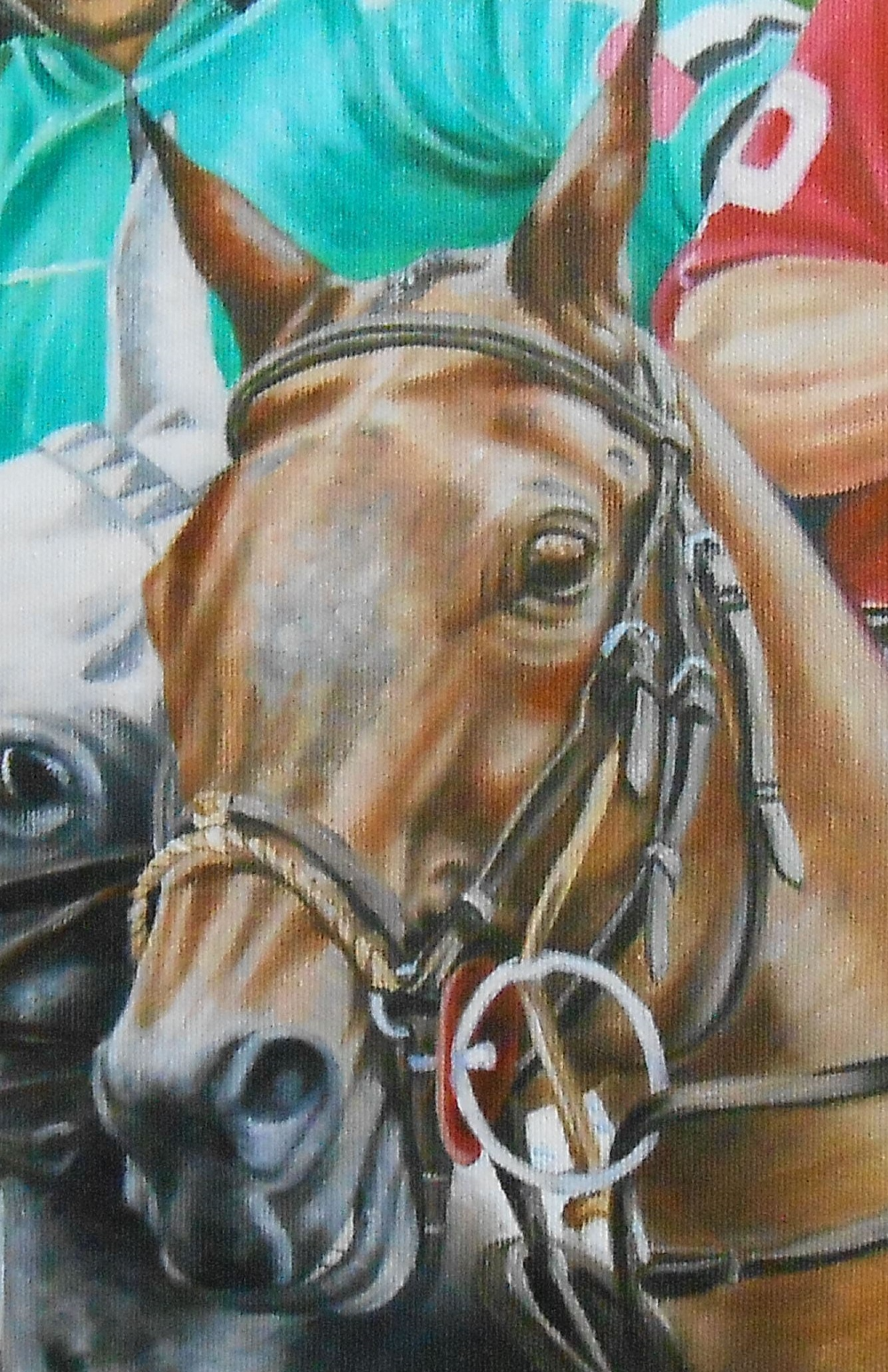 PINTE UN FRAGMENTO DEL JUEGO DE POLO PERO DESTACANDO MÁS LA EXPRESIÓN DE LOS CABALLOS.