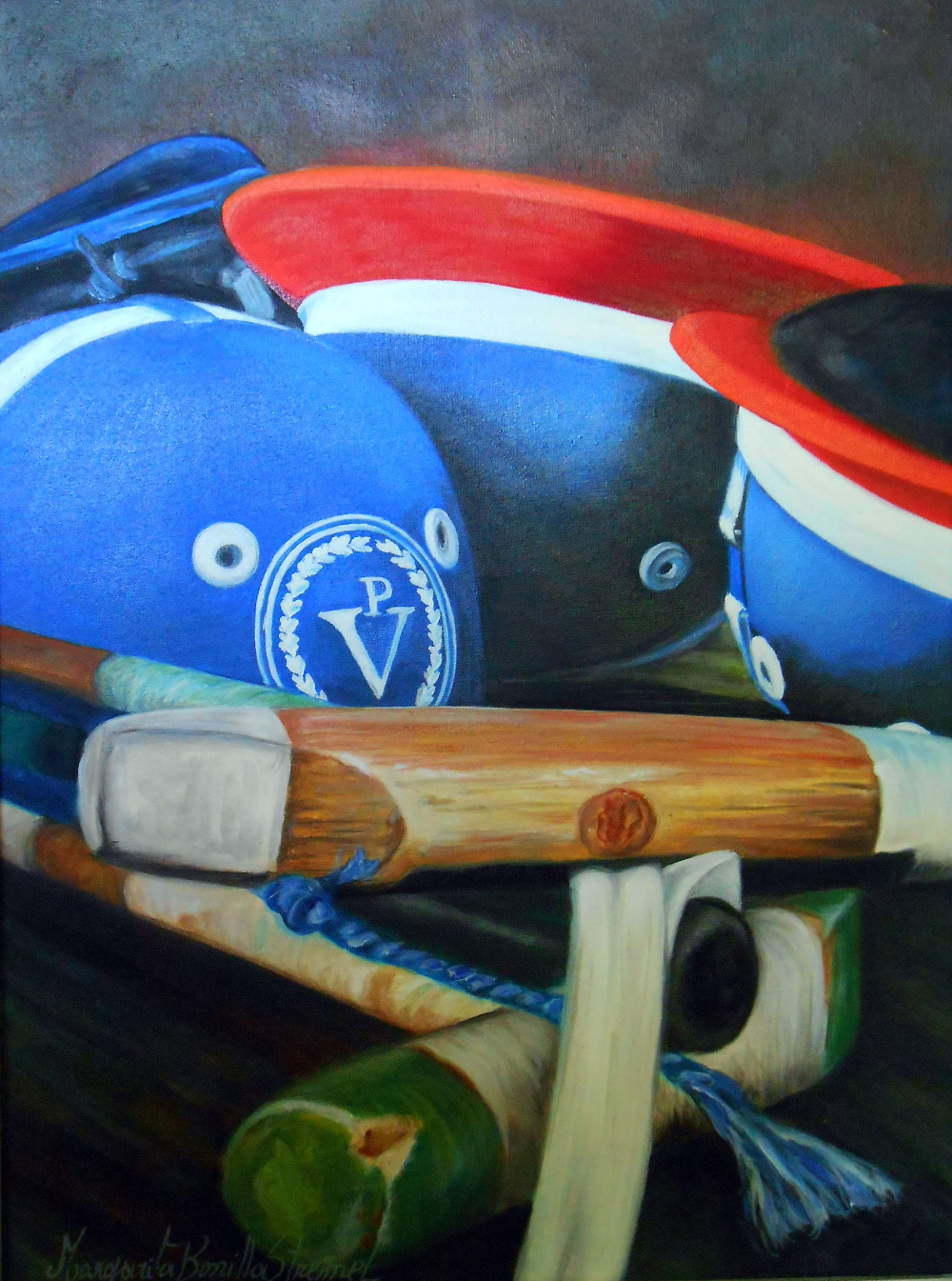 Estando de visita en Puesto Viejo Estancia,caminando por ahí descubrí sobre una mesa los elementos preparados para salir a la cancha a jugar al polo. Me tentaron tanto que saque unas fotos y después realice algunas pinturas EN PEQUEÑO FORMATO.
