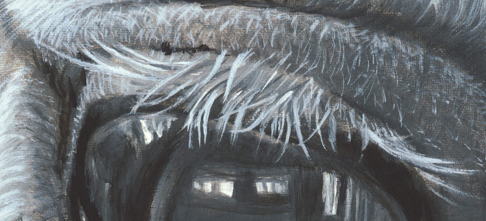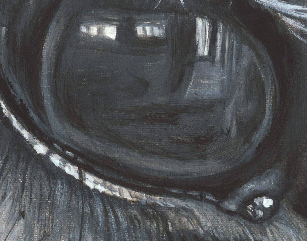 DESCRIPCION: De la serie OJOS, en blanco y negro,una hermosa yeguita española pintada en un bastidor de madera de fibrofacil.