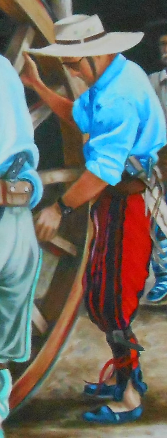 Gauchos correntinos cambiando la rueda de un carro.