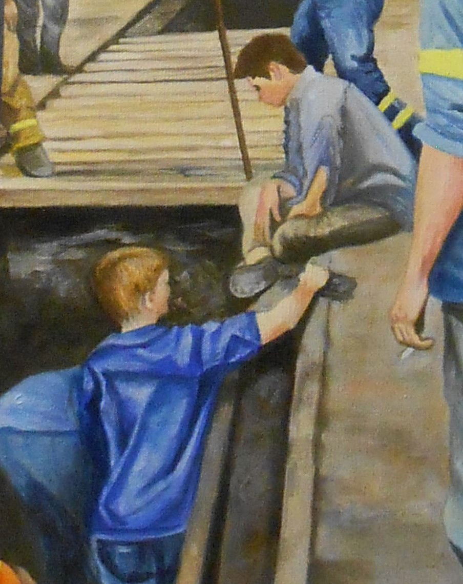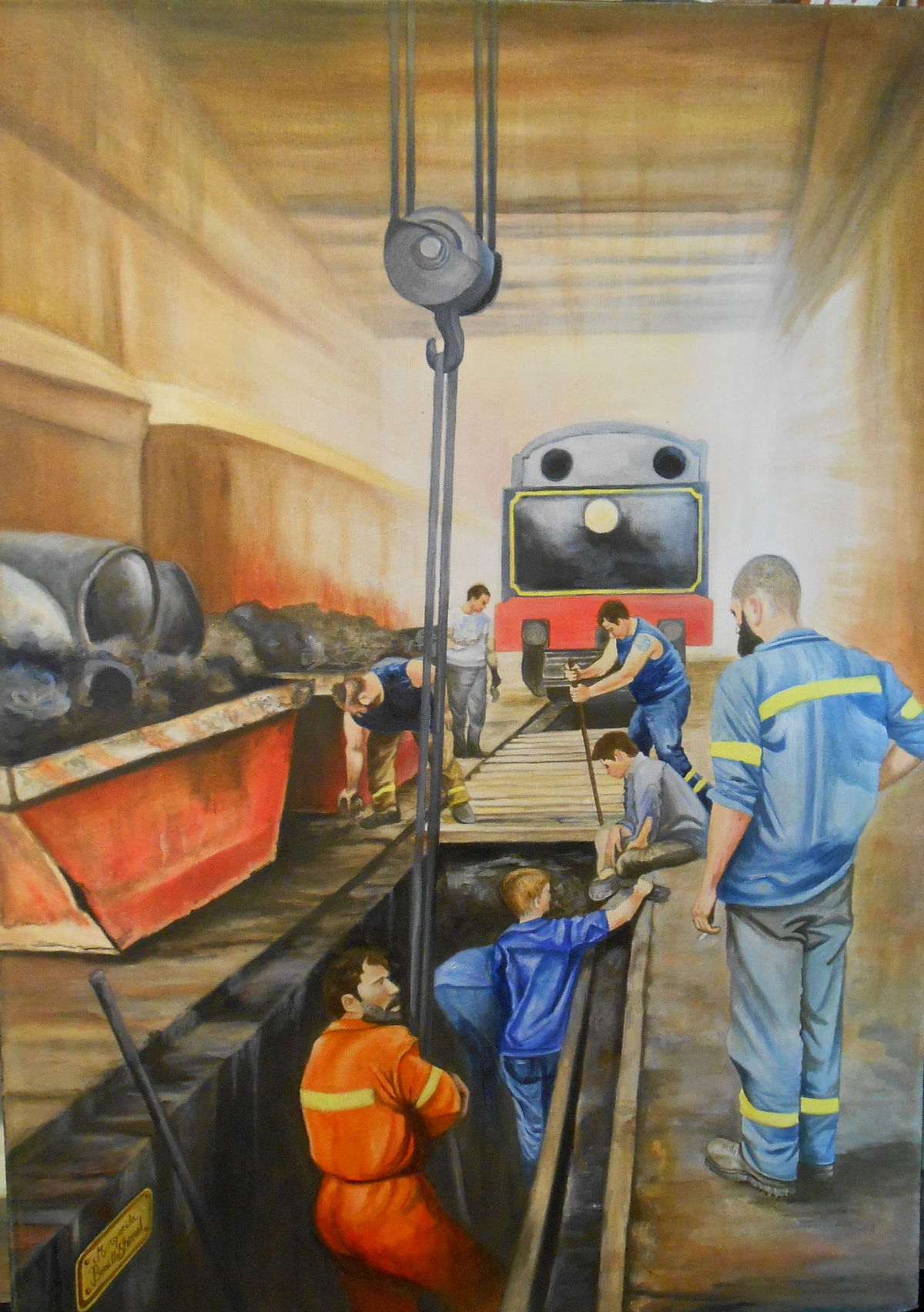 LOS MUCHACHOS DE LOS TALLERES DEL FERROCLUB DE REMEDIOS DE ESCALADA EN PLENO TRABAJO.