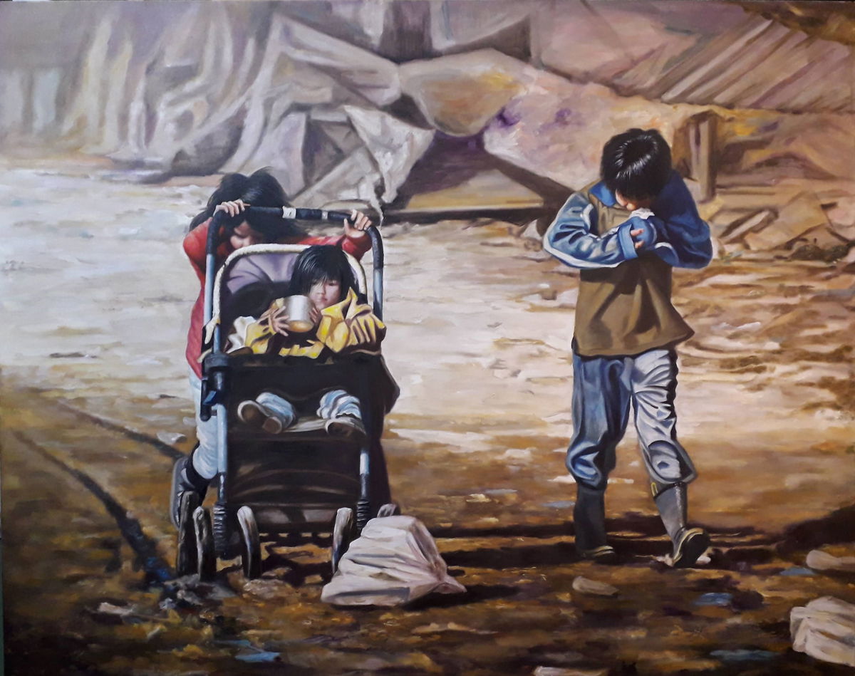 PINTAR UNA ESCENA COTIDIANA Y COMUN PARA CIERTOS CHICOS DE LUGARES MARGINALES.