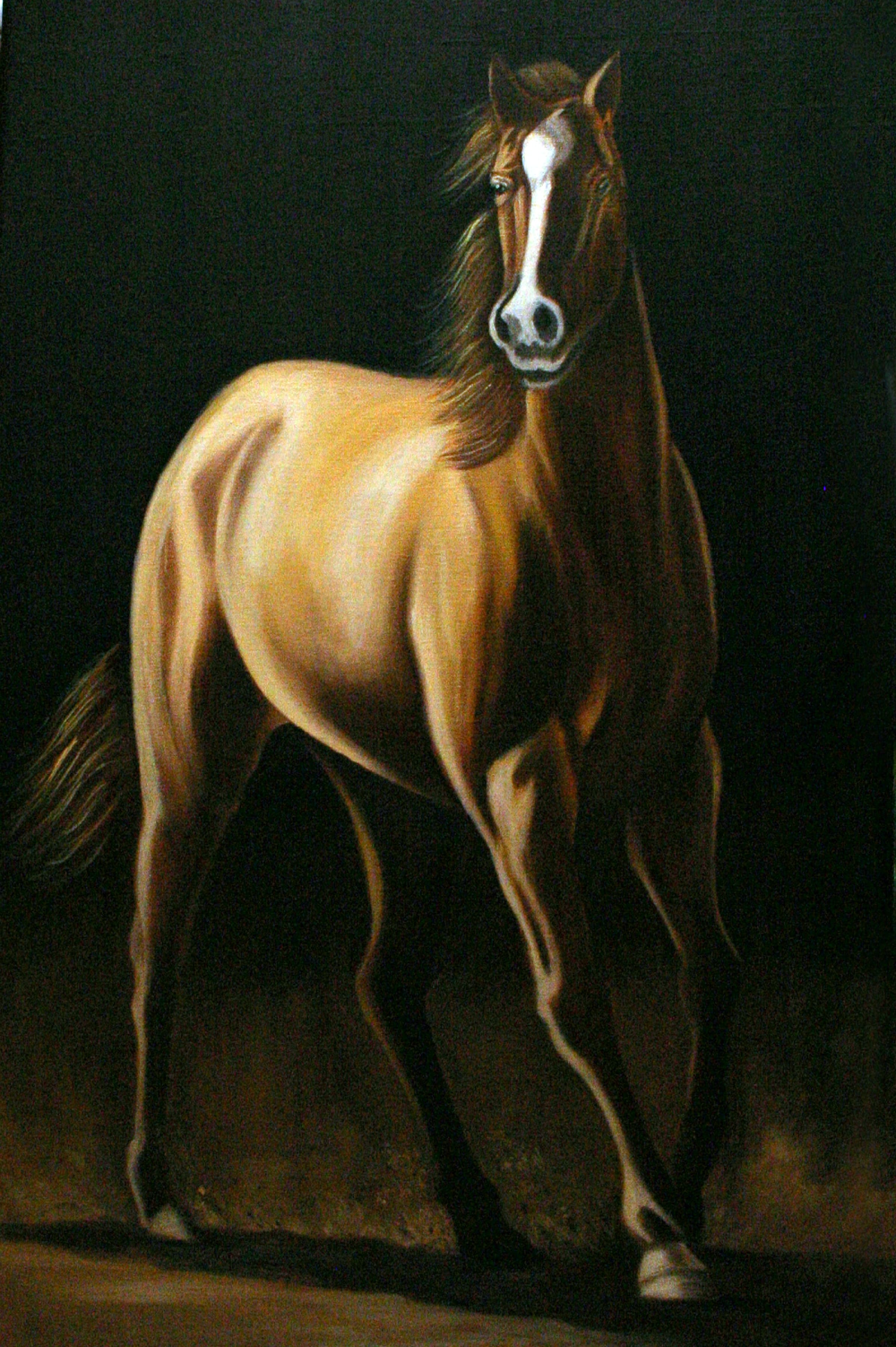 DESCRIPCIÓN: UN CABALLITO,EN COLORES EN CONTRASTE CLARO OSCURO DE TIERRAS.
