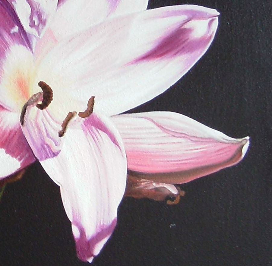 Como en la obra anterior tengo que decir que pinte esta obra por mi sobrina JULIETA que tan absorta por la belleza de las flores me las mostraba un día que las visitaba en su casa hace años.
